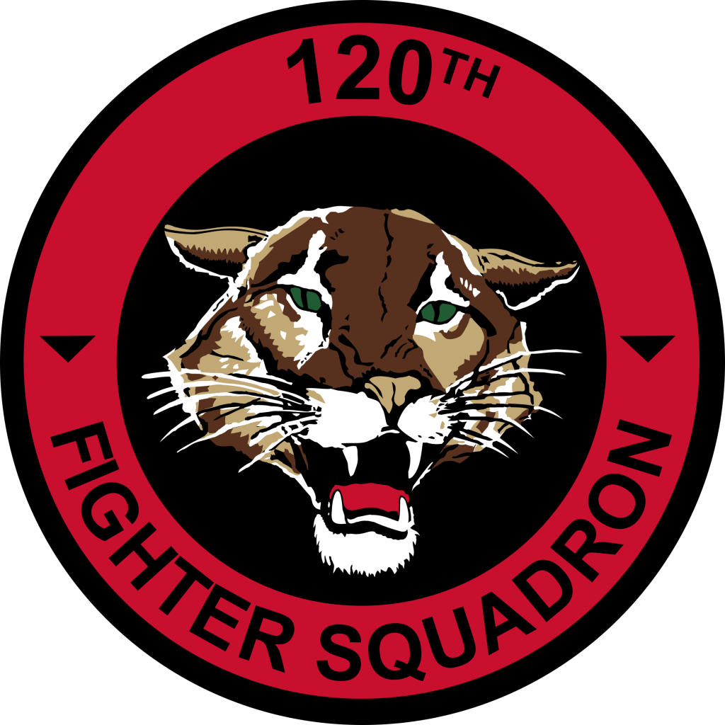 The 120th Fighter Squadron patch is a cougar’s head blazon on a black field within a red disk.